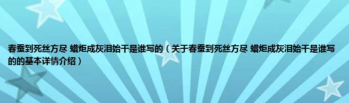 本文关于春蚕到死丝方尽 蜡炬成灰泪始干是谁写的的基本详情介绍就讲解完毕,希望对大家有所帮助。