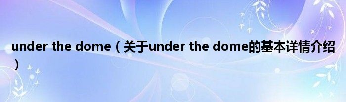 本文关于under the dome的基本详情介绍就讲解完毕,希望对大家有所帮助。