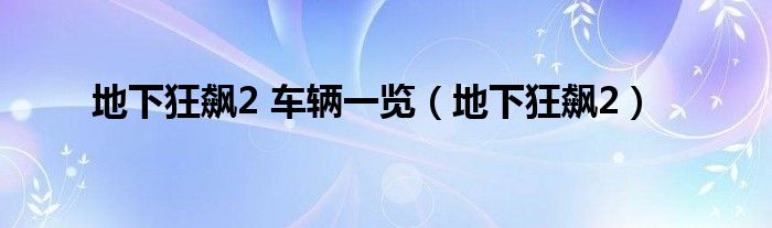以上就是【地下狂飙2 车辆一览,地下狂飙2】相关内容。