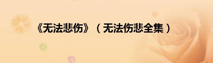 大家好,小问来为大家解答以上问题。《无法悲伤》,无法伤悲全集这个很多人还不知道,现在让我们一起来看看吧!