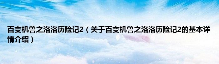本文关于百变机兽之洛洛历险记2的基本详情介绍就讲解完毕,希望对大家有所帮助。