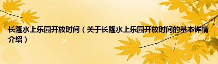 本文关于长隆水上乐园开放时间的基本详情介绍就讲解完毕,希望对大家有所帮助。
