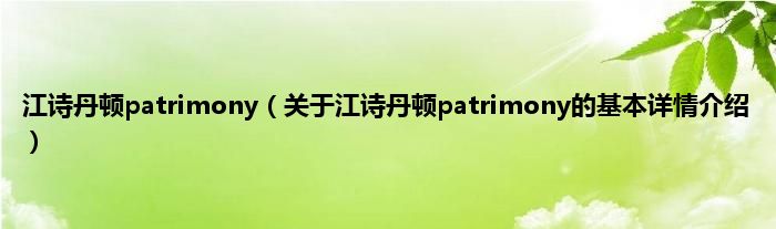 本文关于江诗丹顿patrimony的基本详情介绍就讲解完毕,希望对大家有所帮助。