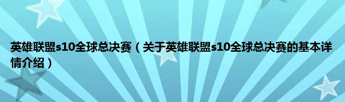 本文关于英雄联盟s10全球总决赛的基本详情介绍就讲解完毕,希望对大家有所帮助。