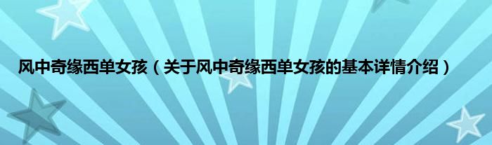 本文关于风中奇缘西单女孩的基本详情介绍就讲解完毕,希望对大家有所帮助。