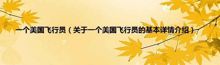 本文关于一个美国飞行员的基本详情介绍就讲解完毕,希望对大家有所帮助。