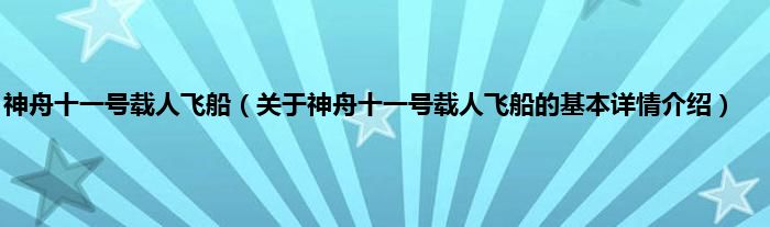 本文关于神舟十一号载人飞船的基本详情介绍就讲解完毕,希望对大家有所帮助。