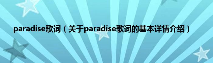 本文关于paradise歌词的基本详情介绍就讲解完毕,希望对大家有所帮助。