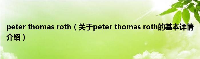 本文关于peter thomas roth的基本详情介绍就讲解完毕,希望对大家有所帮助。