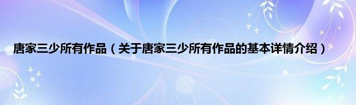 本文关于唐家三少所有作品的基本详情介绍就讲解完毕,希望对大家有所帮助。