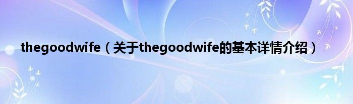 本文关于thegoodwife的基本详情介绍就讲解完毕,希望对大家有所帮助。