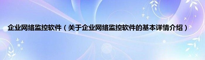 本文关于企业网络监控软件的基本详情介绍就讲解完毕,希望对大家有所帮助。