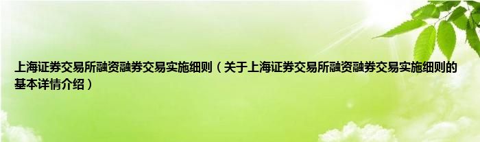 本文关于上海证券交易所融资融券交易实施细则的基本详情介绍就讲解完毕,希望对大家有所帮助。
