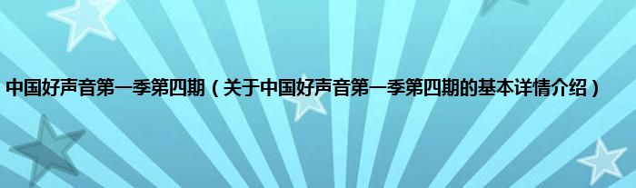 本文关于中国好声音第一季第四期的基本详情介绍就讲解完毕,希望对大家有所帮助。
