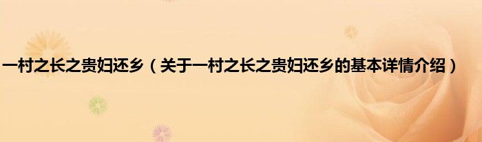 本文关于一村之长之贵妇还乡的基本详情介绍就讲解完毕,希望对大家有所帮助。