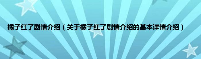 本文关于橘子红了剧情介绍的基本详情介绍就讲解完毕,希望对大家有所帮助。
