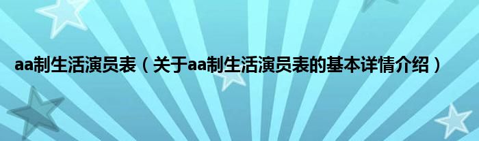 本文关于aa制生活演员表的基本详情介绍就讲解完毕,希望对大家有所帮助。