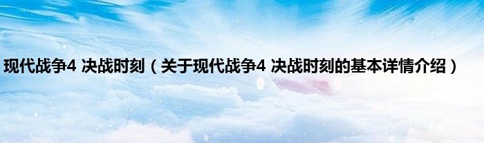 本文关于现代战争4 决战时刻的基本详情介绍就讲解完毕,希望对大家有所帮助。