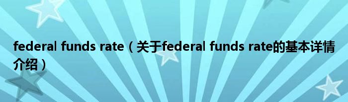 本文关于federal funds rate的基本详情介绍就讲解完毕,希望对大家有所帮助。