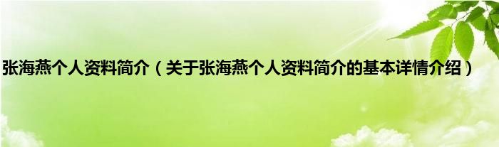 本文关于张海燕个人资料简介的基本详情介绍就讲解完毕,希望对大家有所帮助。