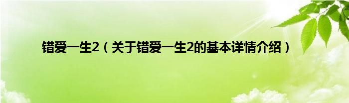 本文关于错爱一生2的基本详情介绍就讲解完毕,希望对大家有所帮助。
