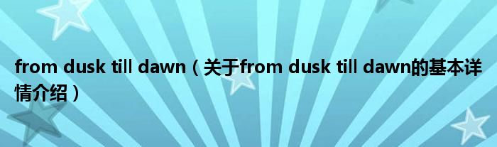 本文关于from dusk till dawn的基本详情介绍就讲解完毕,希望对大家有所帮助。