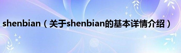 本文关于shenbian的基本详情介绍就讲解完毕,希望对大家有所帮助。