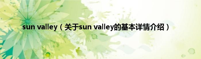 本文关于sun valley的基本详情介绍就讲解完毕,希望对大家有所帮助。