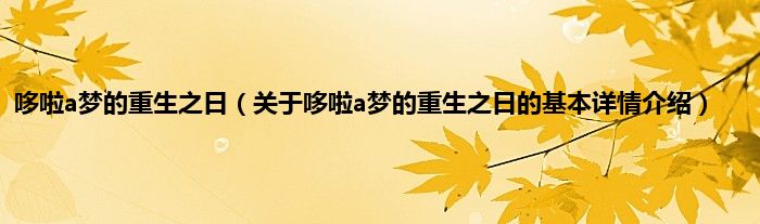 本文关于哆啦a梦的重生之日的基本详情介绍就讲解完毕,希望对大家有所帮助。