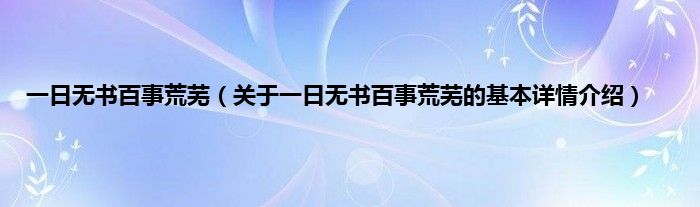本文关于一日无书百事荒芜的基本详情介绍就讲解完毕,希望对大家有所帮助。