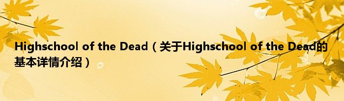 本文关于Highschool of the Dead的基本详情介绍就讲解完毕,希望对大家有所帮助。