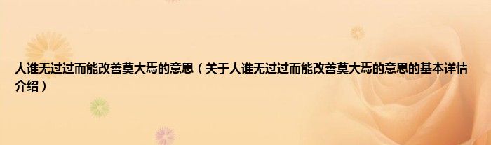 本文关于人谁无过过而能改善莫大焉的意思的基本详情介绍就讲解完毕,希望对大家有所帮助。