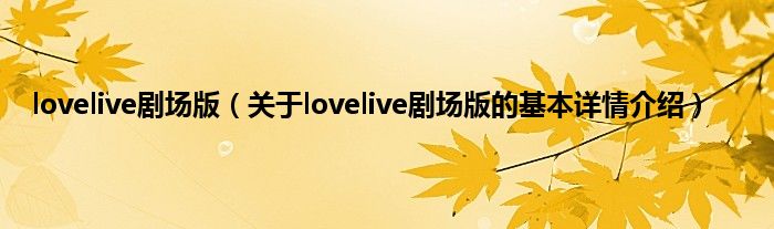 本文关于lovelive剧场版的基本详情介绍就讲解完毕,希望对大家有所帮助。