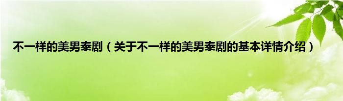 本文关于不一样的美男泰剧的基本详情介绍就讲解完毕,希望对大家有所帮助。
