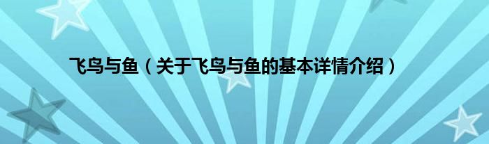 本文关于飞鸟与鱼的基本详情介绍就讲解完毕,希望对大家有所帮助。