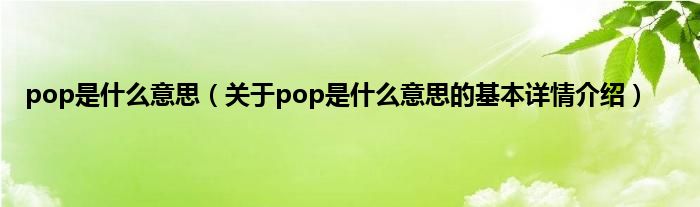 本文关于pop是什么意思的基本详情介绍就讲解完毕,希望对大家有所帮助。