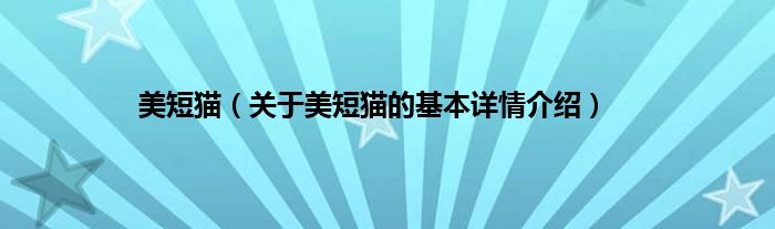 本文关于美短猫的基本详情介绍就讲解完毕,希望对大家有所帮助。