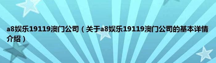 本文关于a8娱乐19119澳门公司的基本详情介绍就讲解完毕,希望对大家有所帮助。