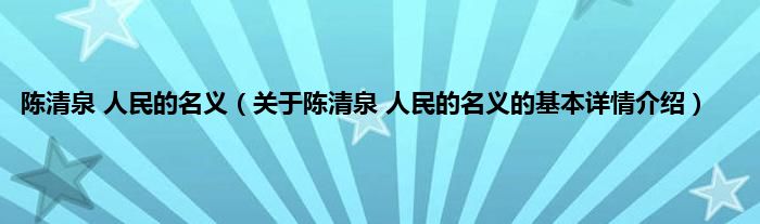 本文关于陈清泉 人民的名义的基本详情介绍就讲解完毕,希望对大家有所帮助。