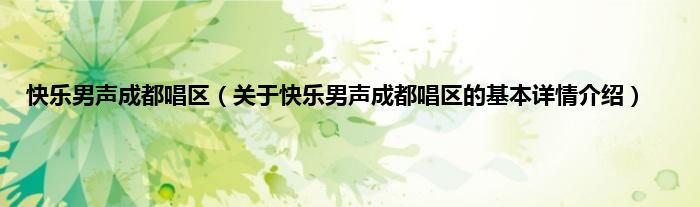 本文关于快乐男声成都唱区的基本详情介绍就讲解完毕,希望对大家有所帮助。
