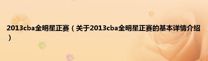 本文关于2013cba全明星正赛的基本详情介绍就讲解完毕,希望对大家有所帮助。