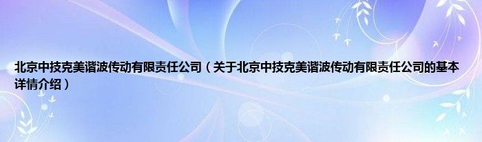 本文关于北京中技克美谐波传动有限责任公司的基本详情介绍就讲解完毕,希望对大家有所帮助。
