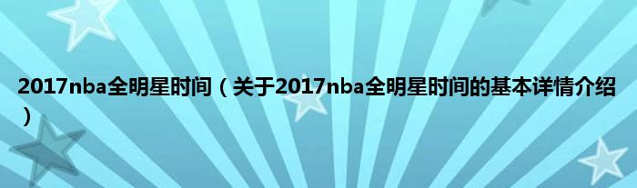 本文关于2017nba全明星时间的基本详情介绍就讲解完毕,希望对大家有所帮助。