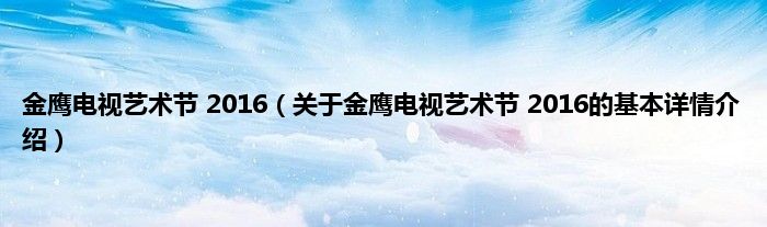 本文关于金鹰电视艺术节 2016的基本详情介绍就讲解完毕,希望对大家有所帮助。