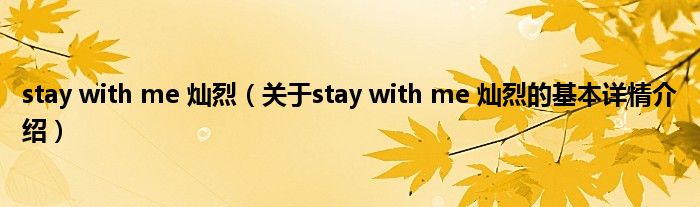 本文关于stay with me 灿烈的基本详情介绍就讲解完毕,希望对大家有所帮助。