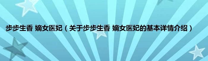 本文关于步步生香 嫡女医妃的基本详情介绍就讲解完毕,希望对大家有所帮助。