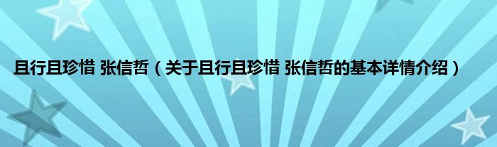 且行且珍惜 张信哲(关于且行且珍惜 张信哲的基本详情介绍)