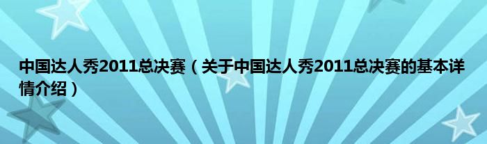 本文关于中国达人秀2011总决赛的基本详情介绍就讲解完毕,希望对大家有所帮助。