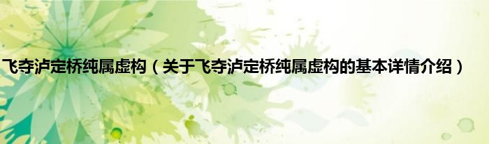 本文关于飞夺泸定桥纯属虚构的基本详情介绍就讲解完毕,希望对大家有所帮助。