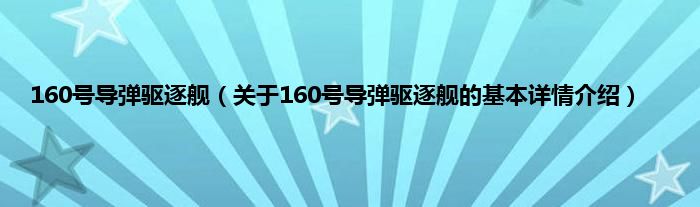 本文关于160号导弹驱逐舰的基本详情介绍就讲解完毕,希望对大家有所帮助。